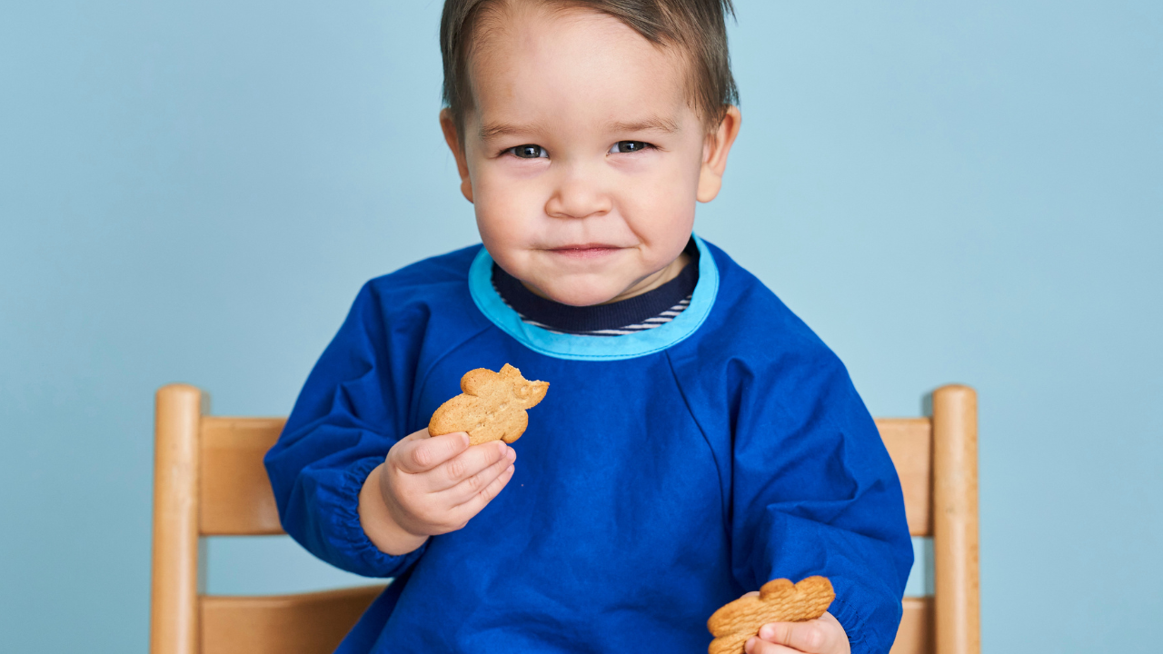 Nana’s MAnners Coverall Bib has a breathable neck design, this short-sleeved bib fits children aged 6 months to 3 years and is a great long-use alternative to plastic or silicone bibs.